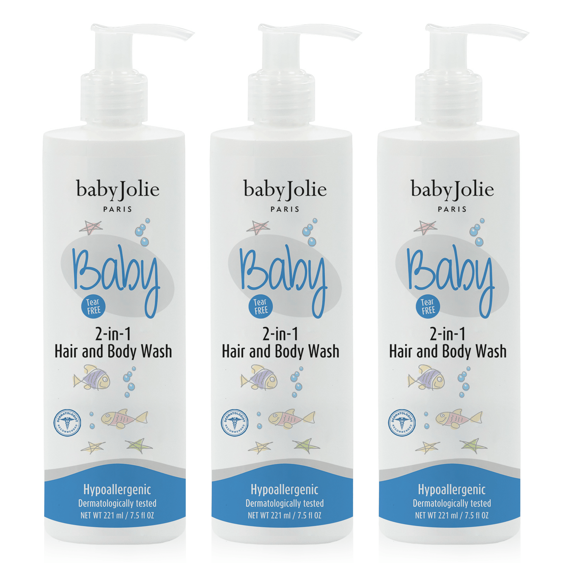 Contains 3 Baby Hair And Body Wash, 2 em 1 - 7.5oz (221ml)