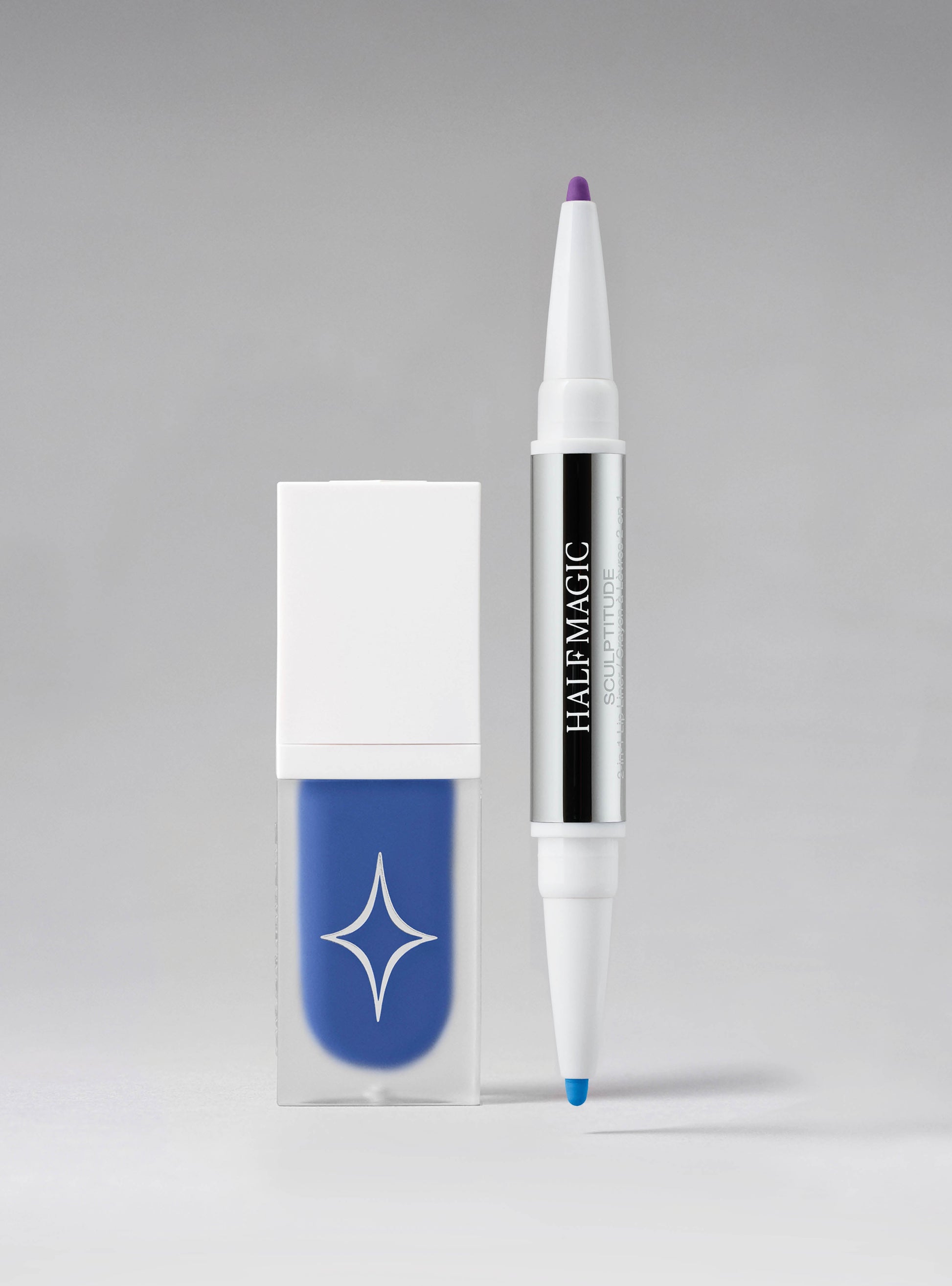 Learn how to rock a blue lip with our guided foray into lip halos and custom shade mixing. Pair bold cobalt blue MOUTH CLOUD Soft Matte Lip Cream (Excuse Me Sir) with SCULPTITUDE 2-in-1 Longwear Lip Liner in violet for an instantly edgy femme take, or electric blue for a pop of playful color. An endless number of customizable looks await.