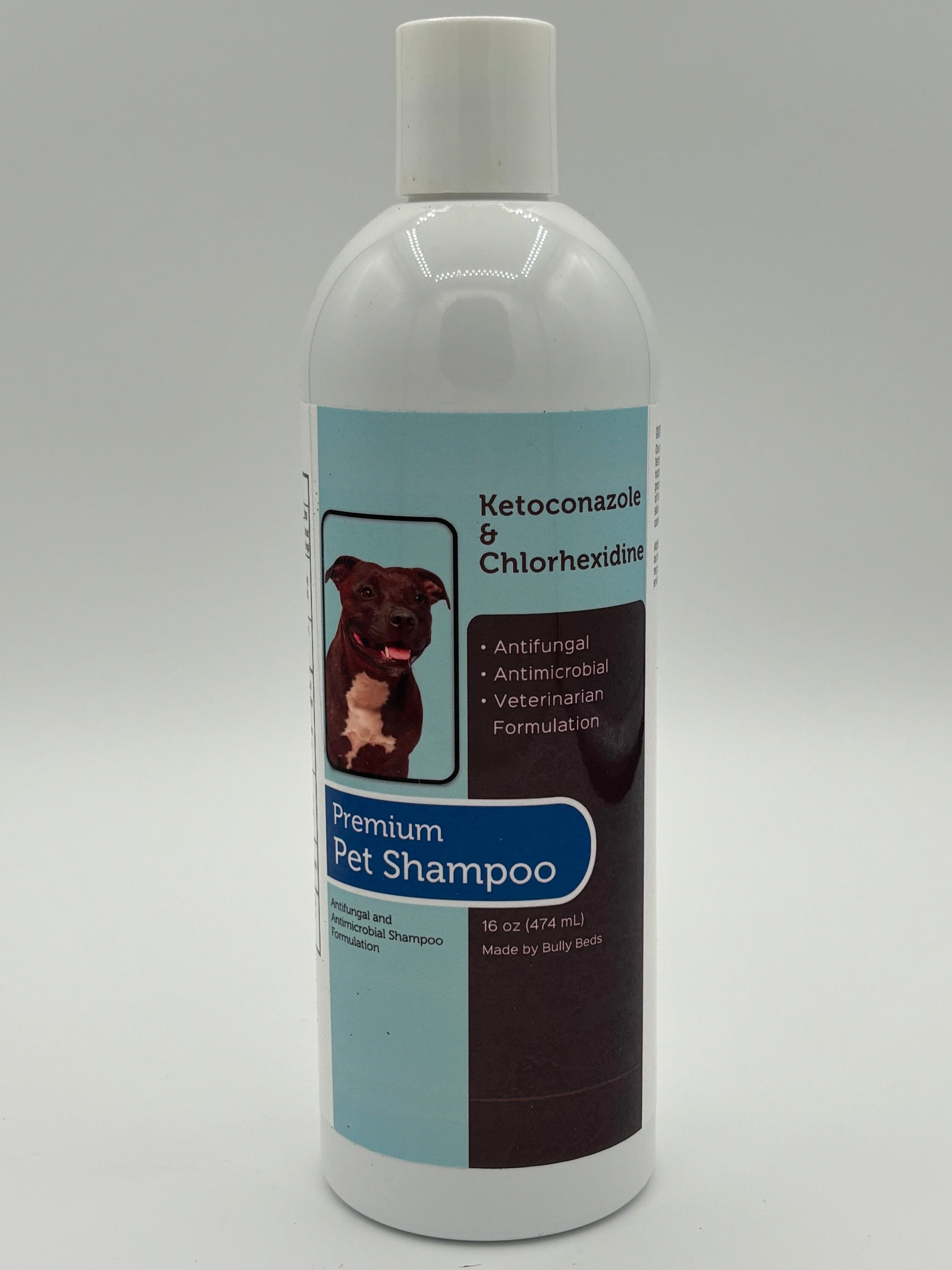 A veterinarian formulated medicated shampoo with broad spectrum antimicrobial and antifungal properties. Designed for use in dogs, horses and cats. Contains Ketoconazole 1% (antifungal) and Chloroxylenol 2% (antibacterial).