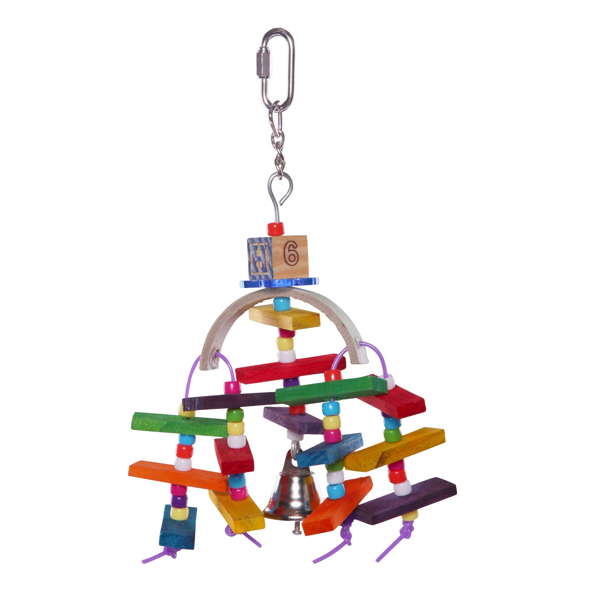 This toy provides textures and shapes that birds may encounter in the wild. It's designed to suit various sizes and cages, creating surfaces birds can climb or peck, which is great for their muscular development.