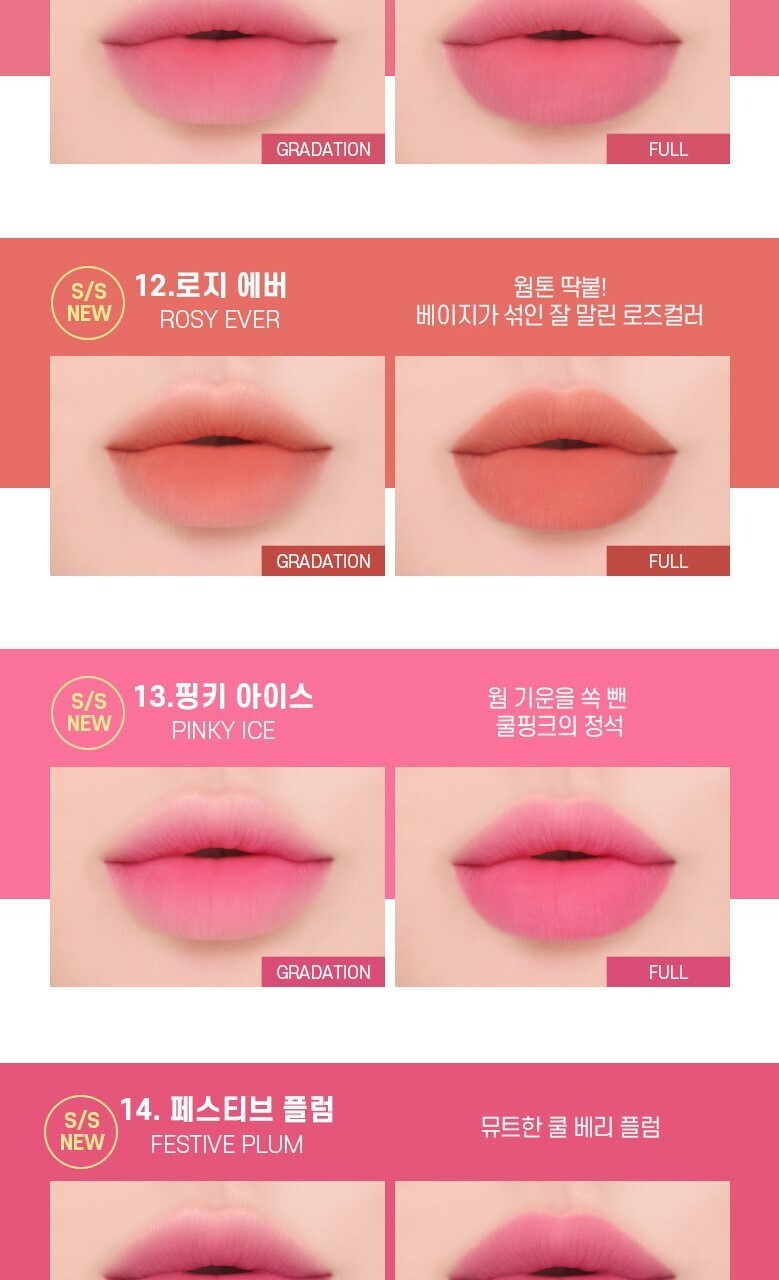 - A dewy velvet tint that applies with a watery touch and blurs softly.