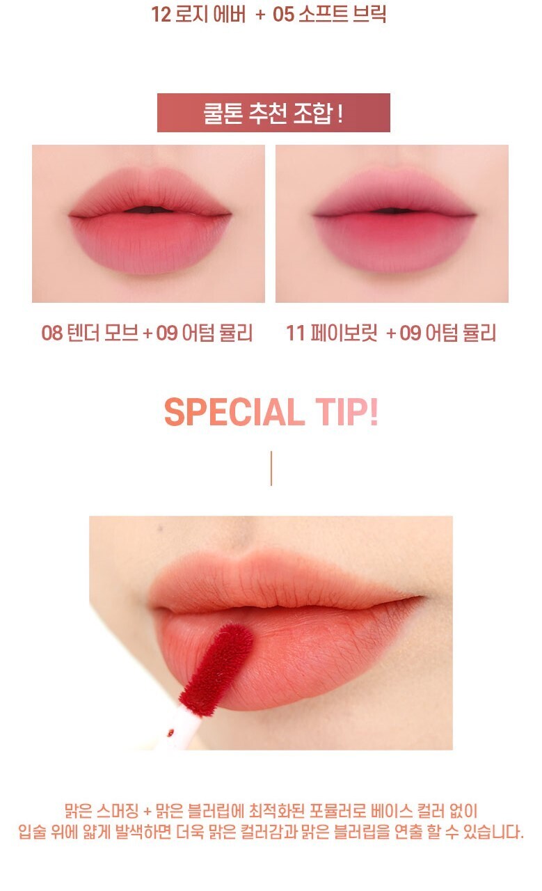 With its non-sticky texture, it allows a sheer yet seamless blurred lip effect without emphasizing keratin or wrinkles, giving you a fresh and soft lip look.